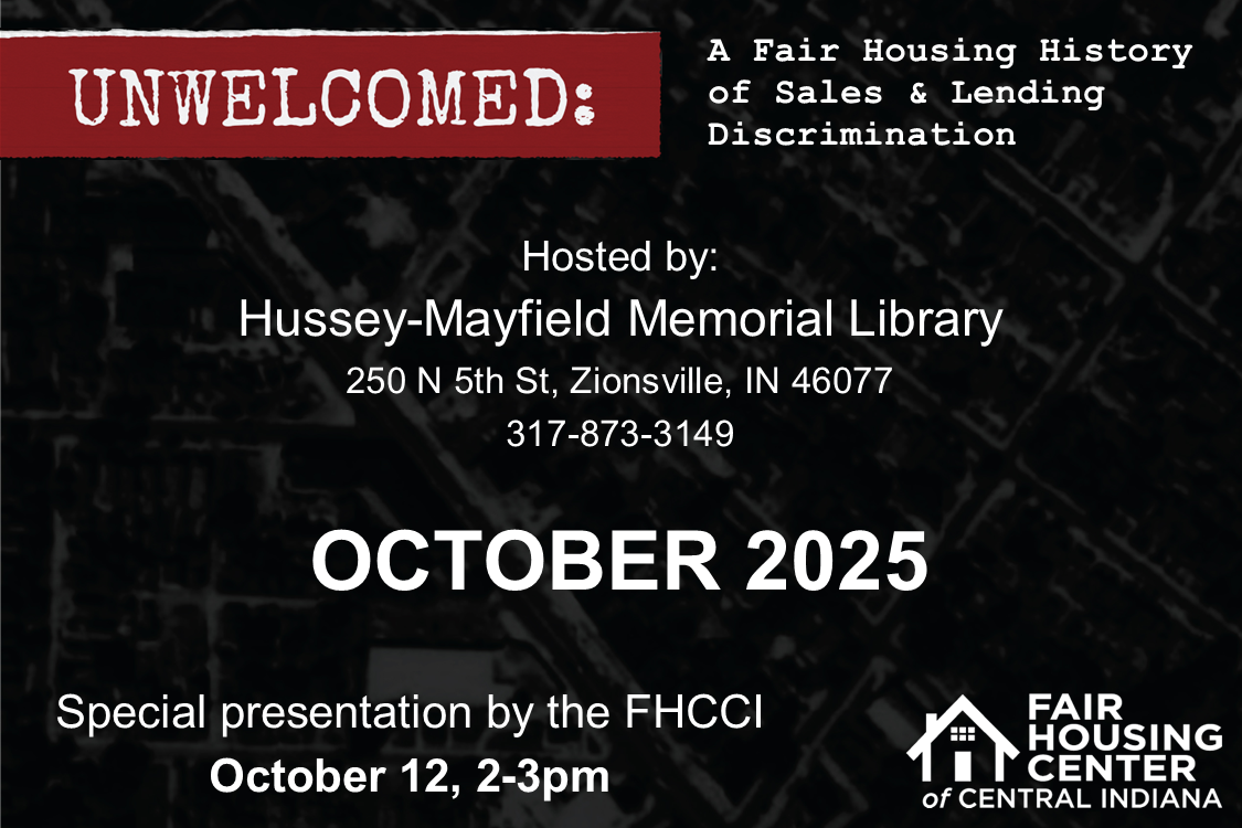 From October 7 to November 1, the Zionsville Branch is hosting the Fair Housing Center of Central Indiana’s “Unwelcomed” exhibit. This interactive exhibit educates visitors...