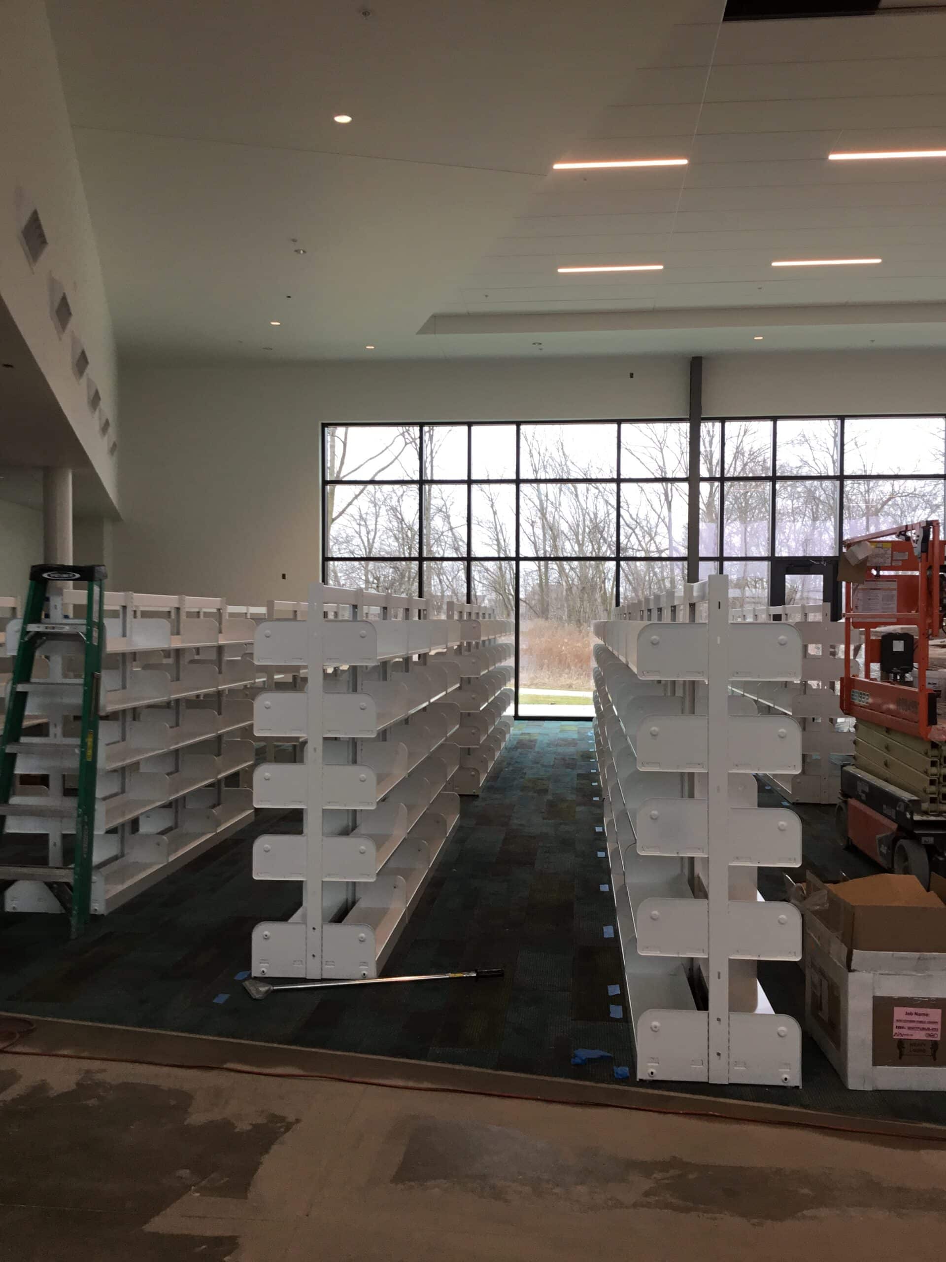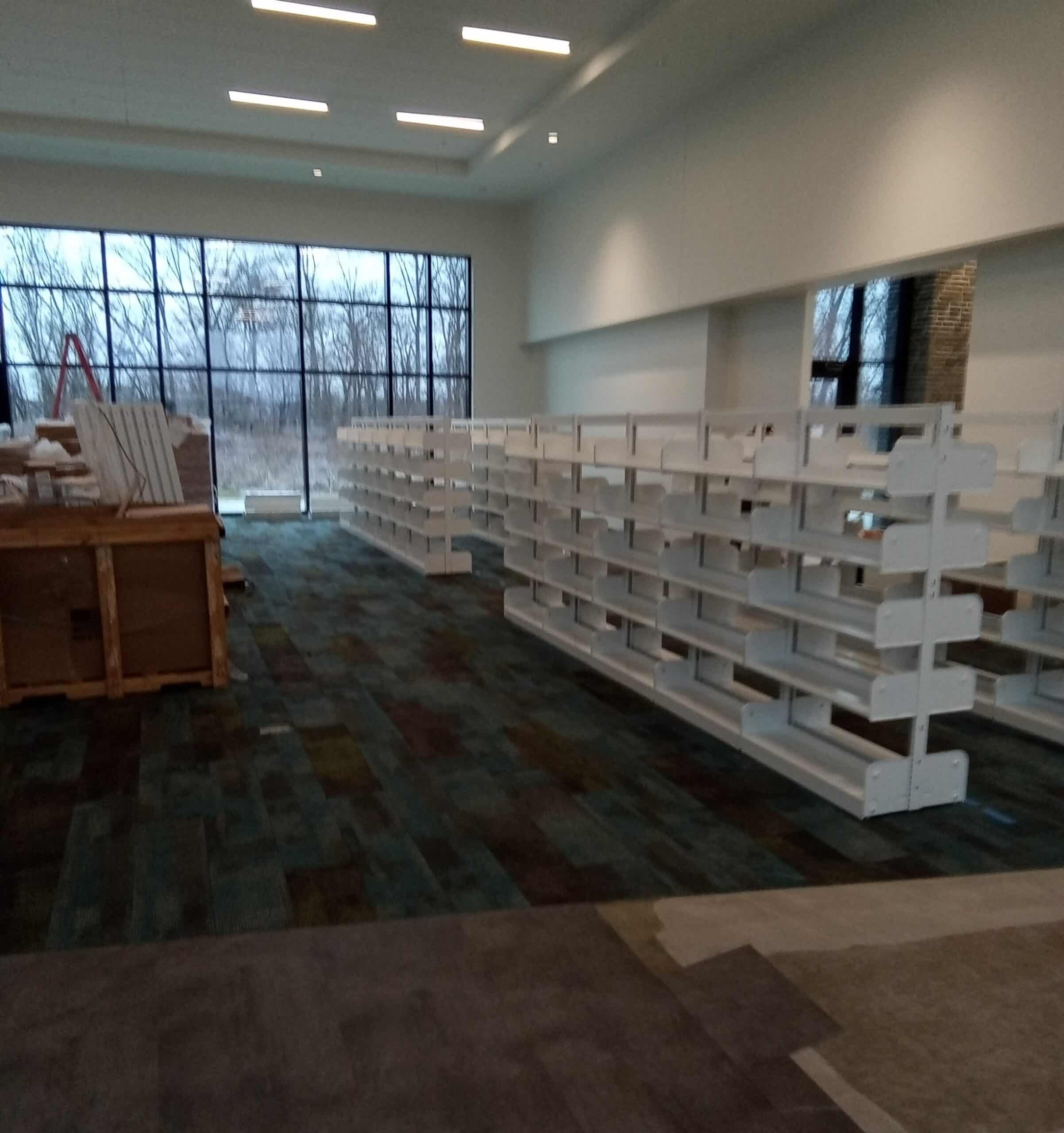 We now have in place desks, cabinets, furniture and shelves to house all of the wonderful library materials that will be available to the community! More than 50,000 titles have been purchased for the Branch’s collection of new books, videos, audiobooks, magazines and more. A matching grant from the Community Foundation of Boone County combined with the generosity of the public and the Friends of the Library funded three special collections for the branch, electronic read-along books, educational nature books, and Pea Pod Packs of board books. Grand opening attendees will be the first to have access to these materials and may start checking them out once the doors open, March 16.